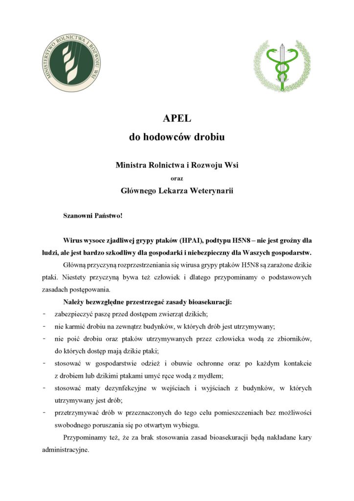 Informacje w dotyczące wystąpieniem wysoce zjadliwej grypy ptaków